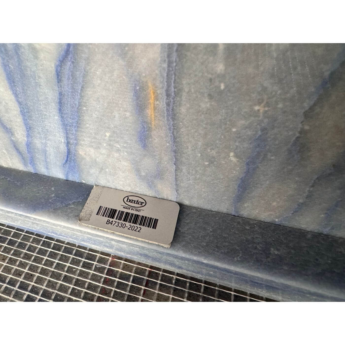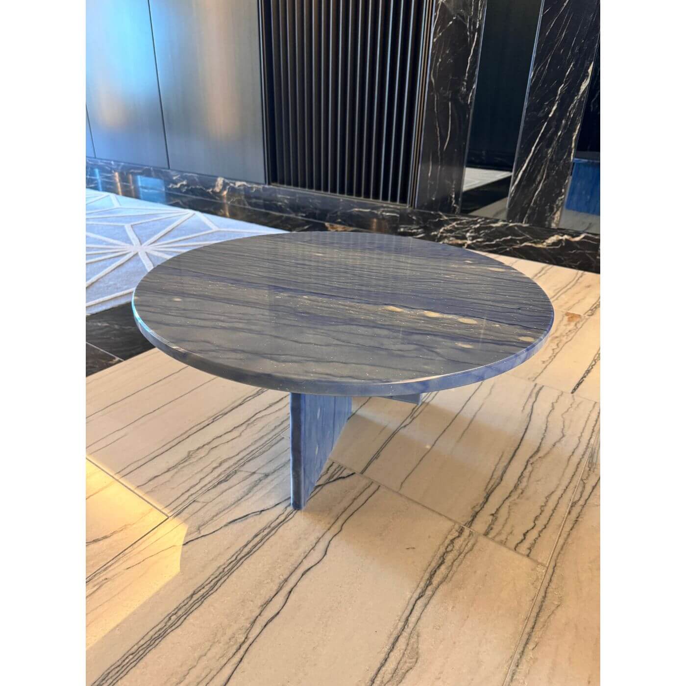 The Tebe occasional table by Baxter is a striking piece in glossy brioche onyx stone. The legs are reinforced with 4mm tempered glass inserts to ensure stability. With beautiful tonal blues running through the piece it will make a statement wherever it is placed.