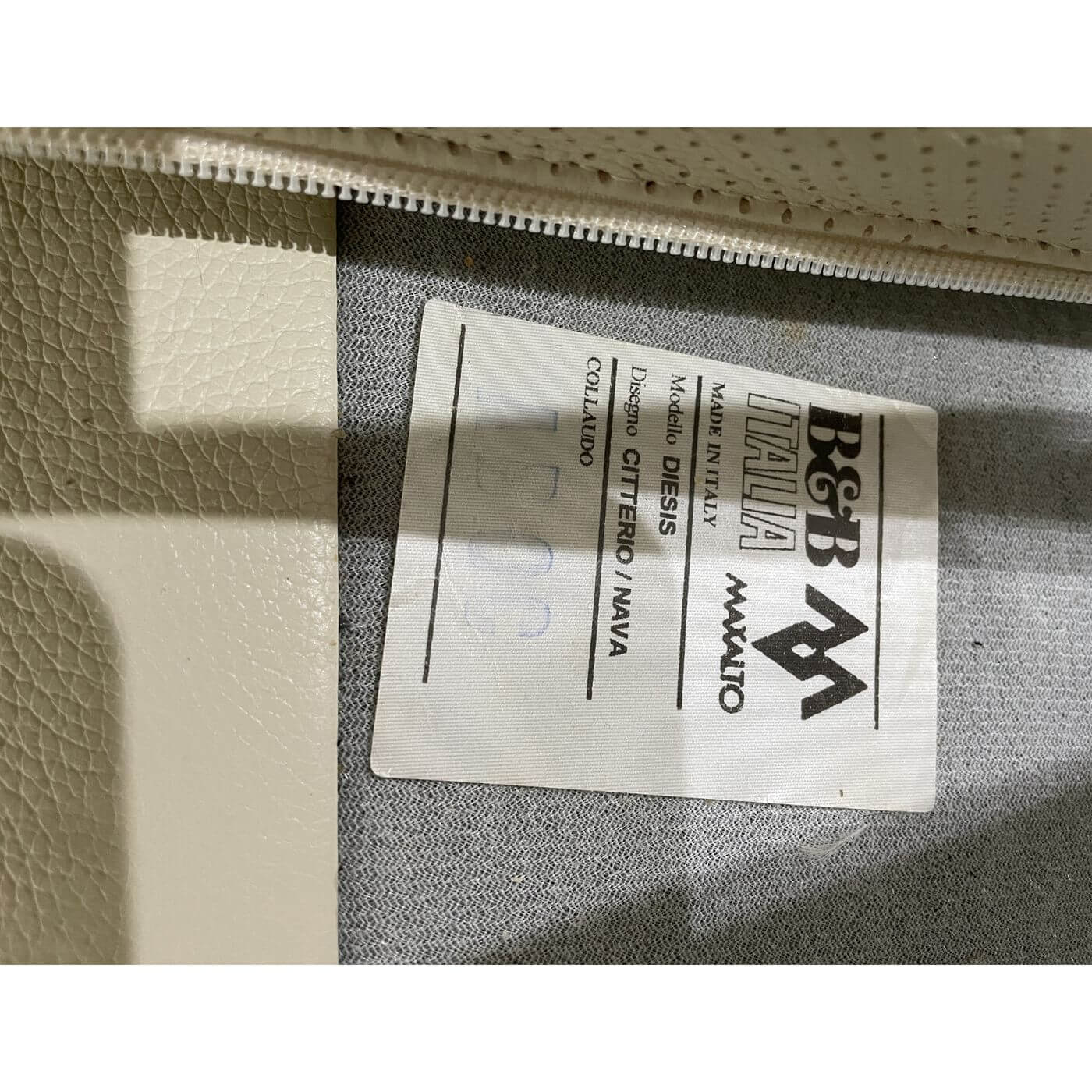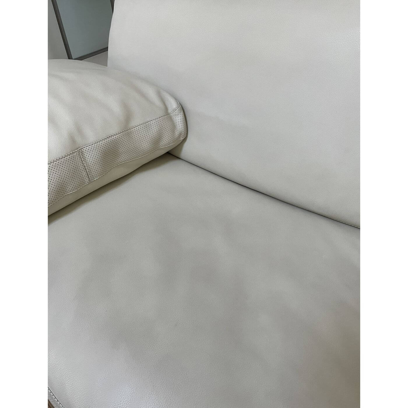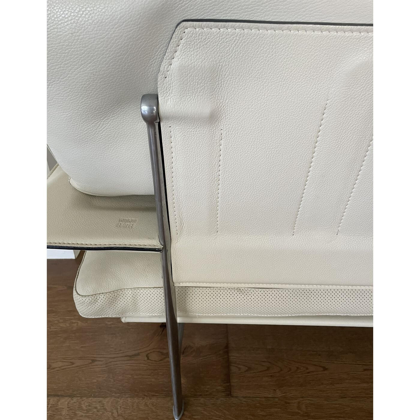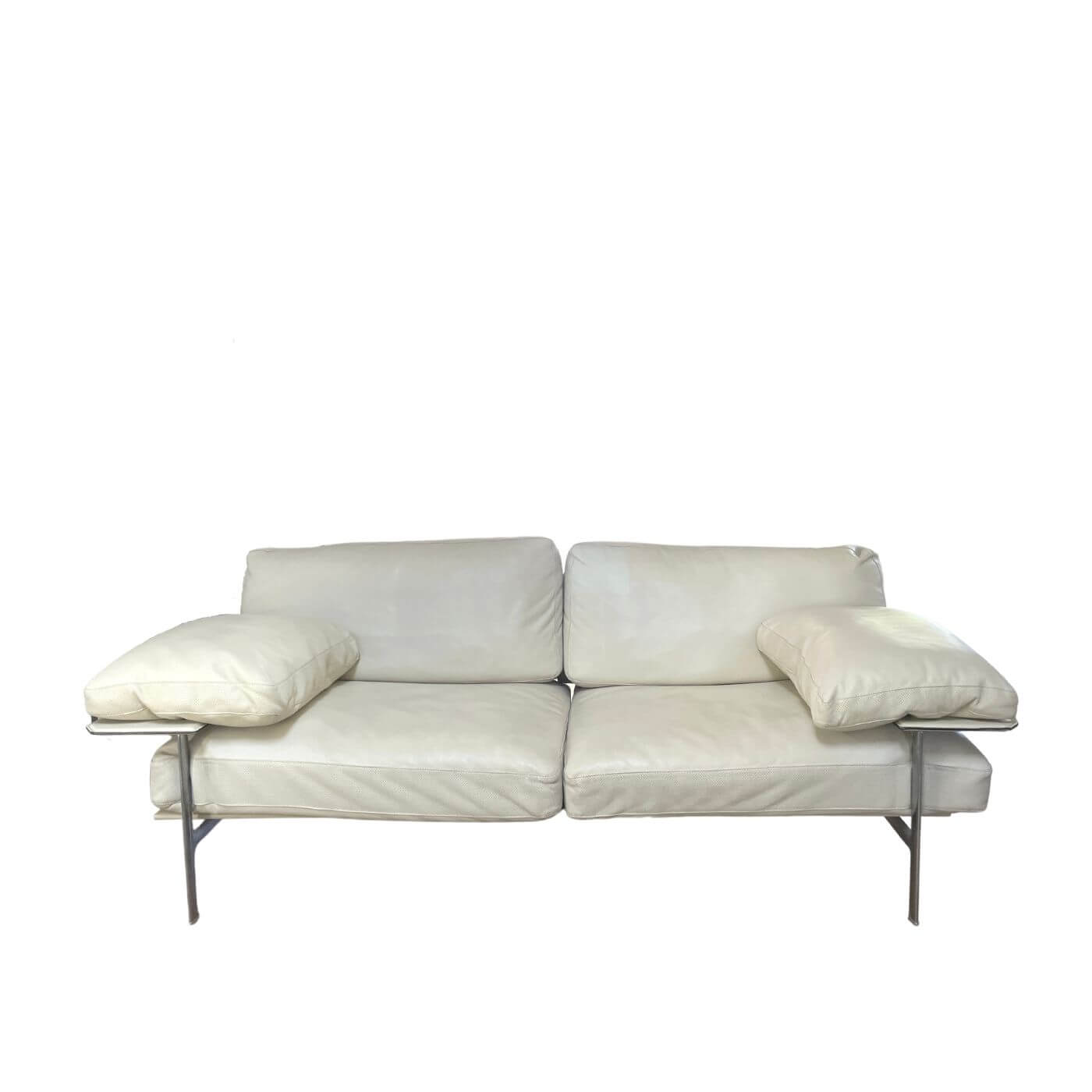 B&B Italia Diesis Sofa. Stunning ivory leather 2 seater sofa, approximately 20 years old and in mint condition. Designed in the late 1970's by Antonio Citterio and Paolo Nava, the Diesis has a beautifully retro personality. Described as 'an absolute icon' it holds an important place in the history of design and is coveted internationally. It's all in the details with the Diesis - the thick leather clad comb-shaped back, the micro-perforated details for aeration, and the leather clad armrests, all topped with plush cushioning. The Diesis is designed with careful attention to detail and has a strong design personality. It is stunning from any angle and with its leather upholstered back can be placed at the centre of the room.