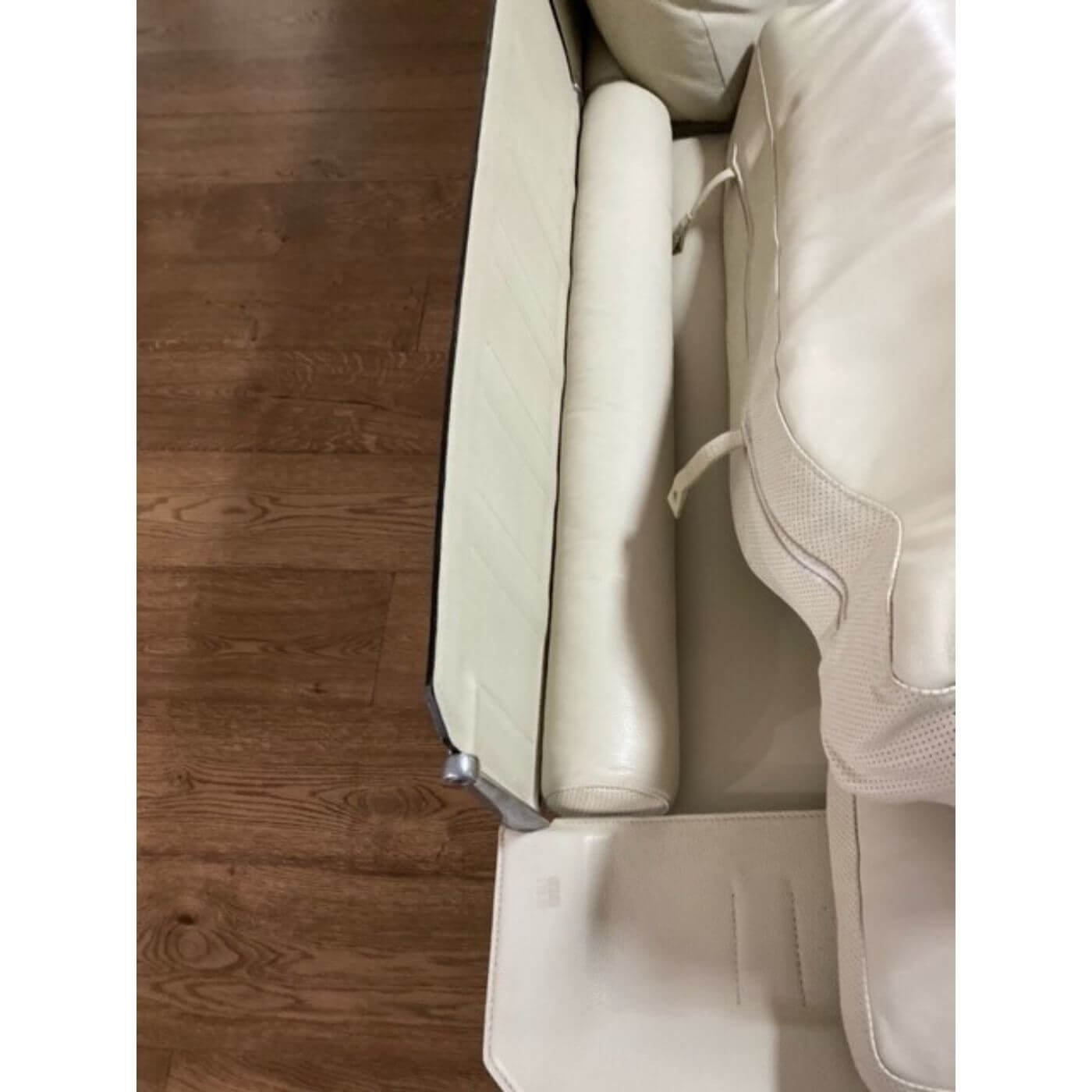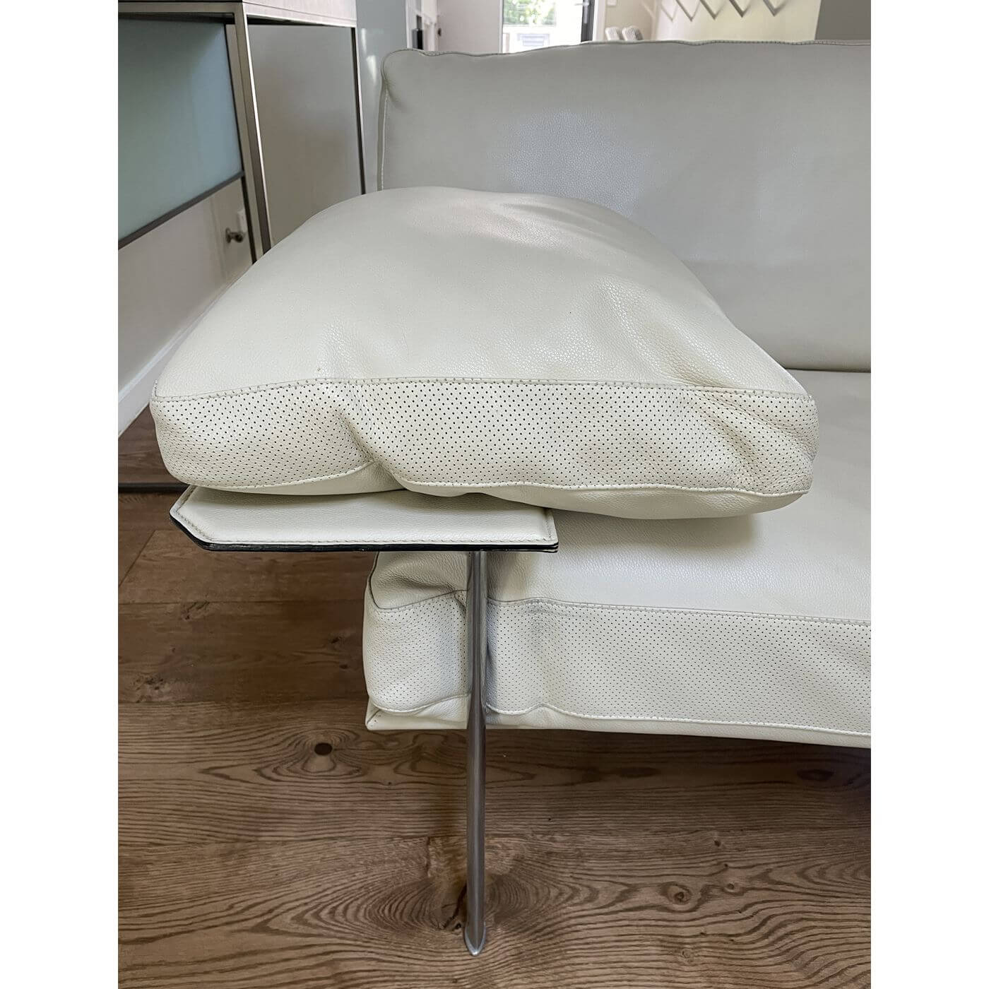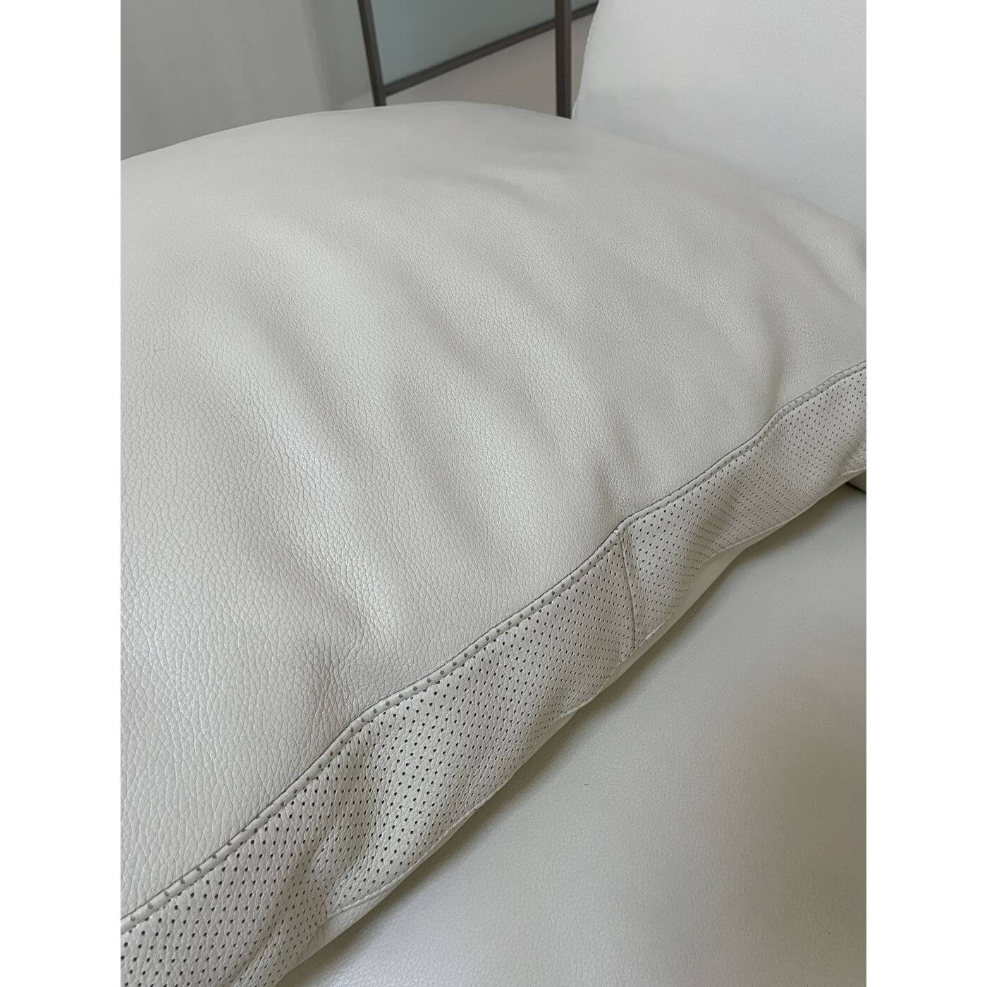 B&B Italia Diesis Sofa. Stunning ivory leather 2 seater sofa, approximately 20 years old and in mint condition. Designed in the late 1970's by Antonio Citterio and Paolo Nava, the Diesis has a beautifully retro personality. Described as 'an absolute icon' it holds an important place in the history of design and is coveted internationally. It's all in the details with the Diesis - the thick leather clad comb-shaped back, the micro-perforated details for aeration, and the leather clad armrests, all topped with plush cushioning. The Diesis is designed with careful attention to detail and has a strong design personality. It is stunning from any angle and with its leather upholstered back can be placed at the centre of the room.