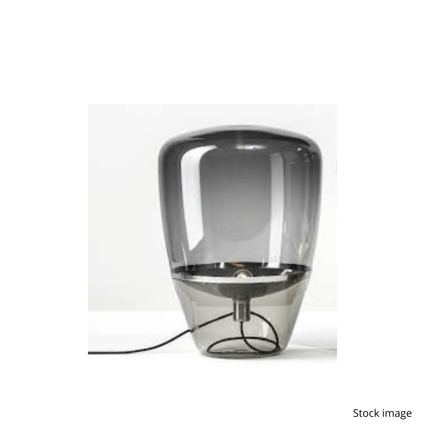 Brokis Balloon lamp. Tapered to base. Grey smoked blown glass top that fits into base. Unusual and impressive lamp. A couple of chips in glass that are not seen when assembled.