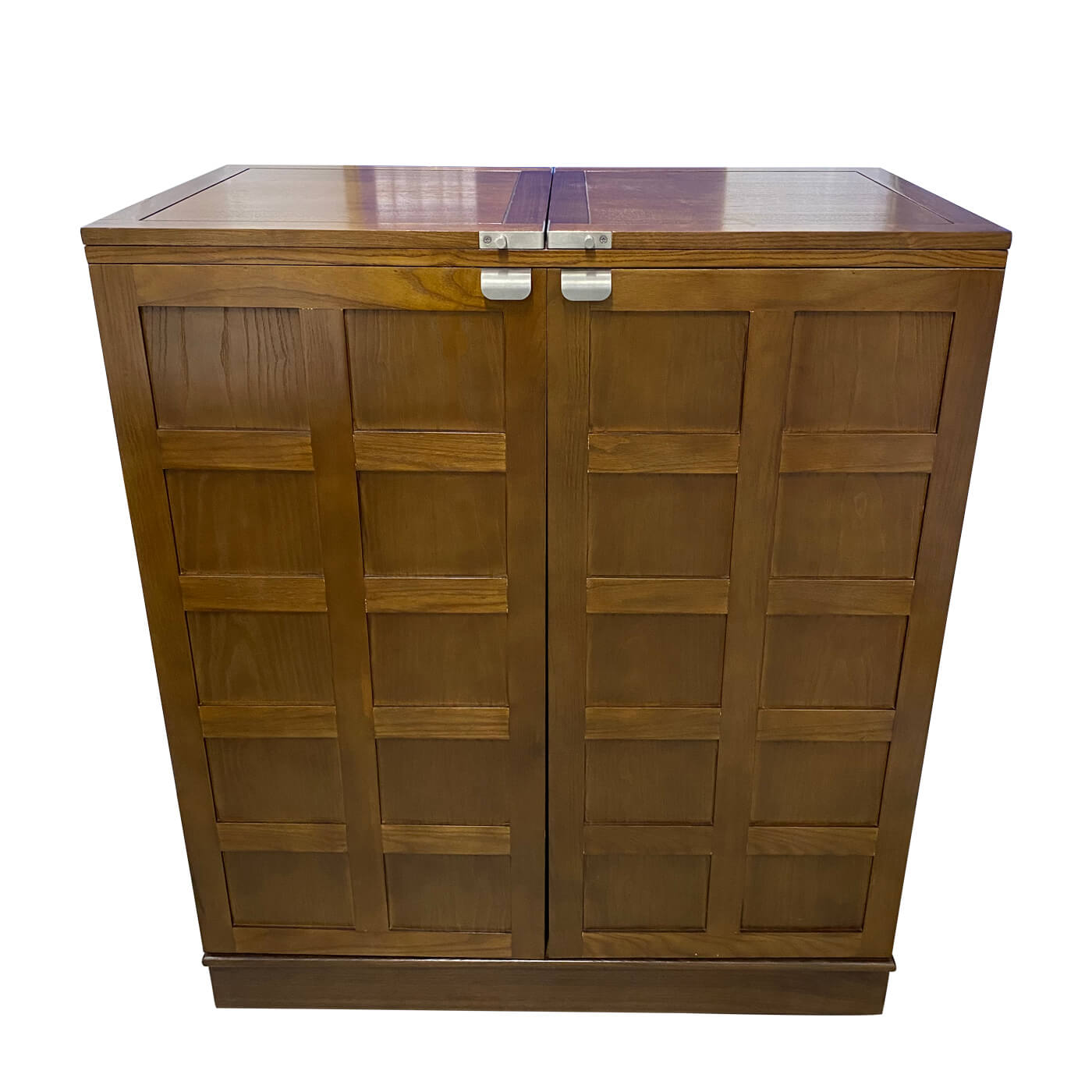 Made of American ash wood with a walnut stain. Stainless steel fittings Casa Ligna Opens to a 6 foot bar on wheels.