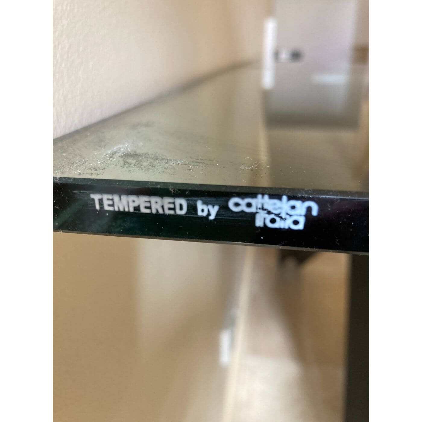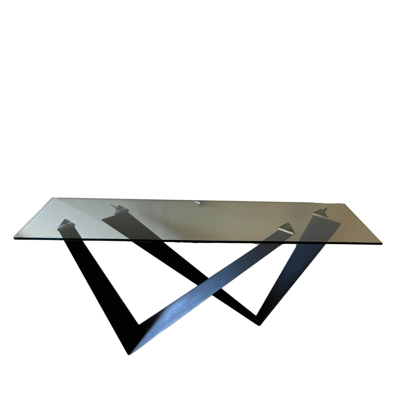 Material: base : graphite lacquered steel / table top : 12 mm thick glass