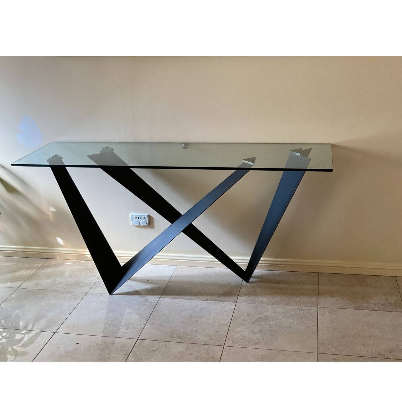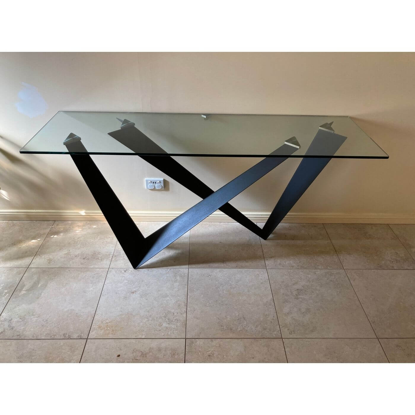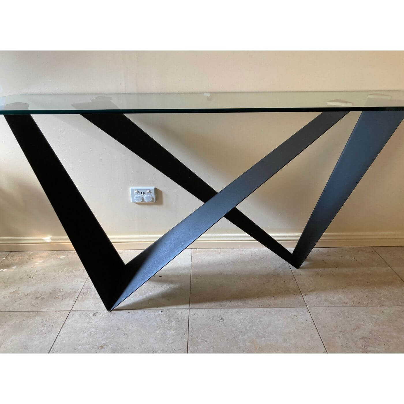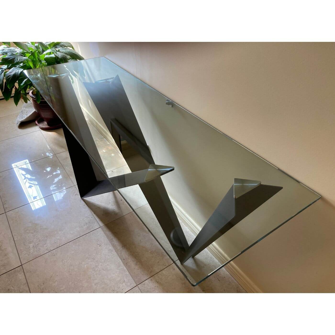 Cattelan Italia Skorpio console table. Designed in 2014 the Skorpio collection of tables from Cattelan Italia are a geometric balance of magical origami and light reflections. This table is approximately 5 years old and in excellent condition. Owner selling due to down-sizing. Originally purchased for $2590. Please note that this table requires bracing against a wall.