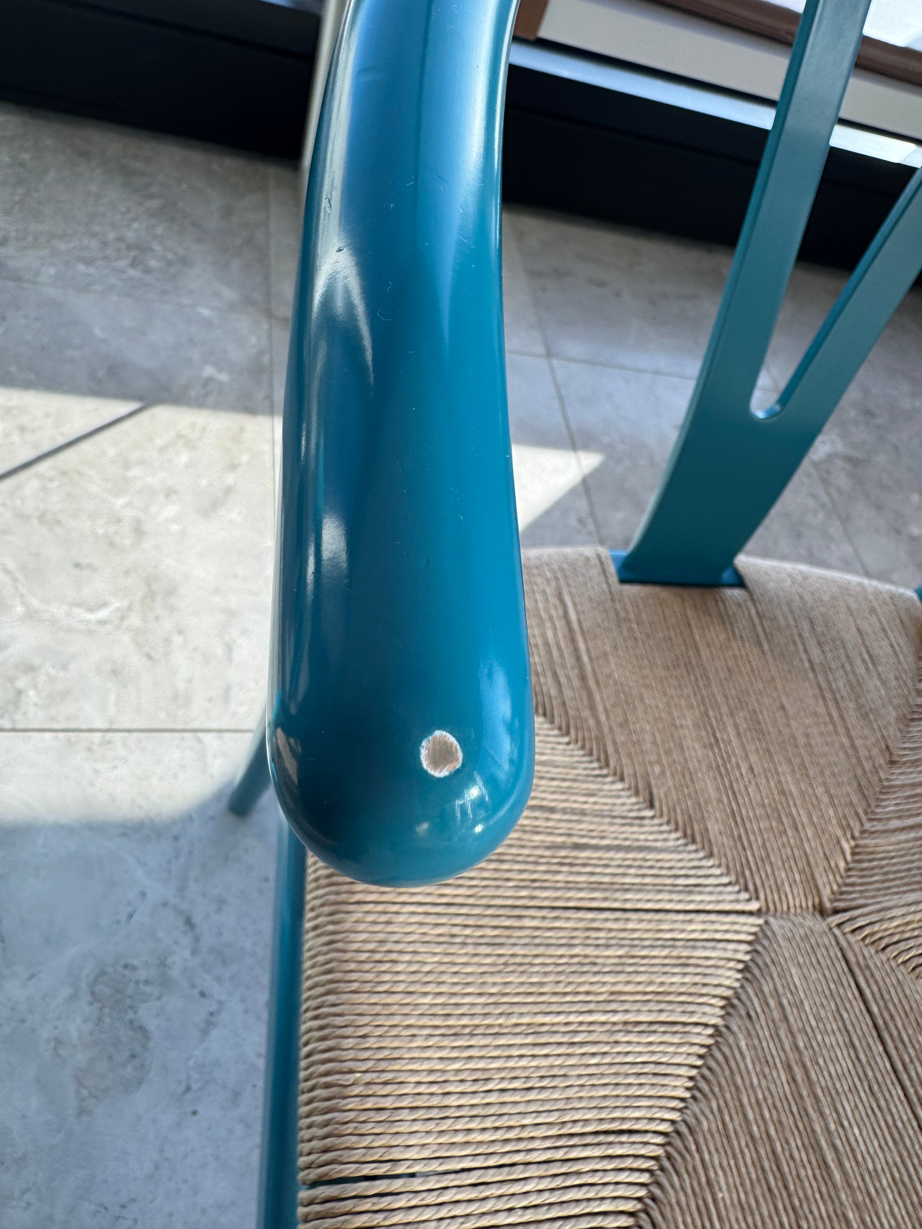 Crafted with precision and care, these chairs combine timeless design with modern elegance, making them a perfect addition to any room. Designed by the legendary Hans Wegner, the Wishbone Chair, also known as the CH24, is celebrated for its unique Y-shaped back and comfortable seating. The craftsmanship and attention to detail are evident in every aspect of the design, from the smooth curves to the seamless joints and the expertly woven papercord seating. Perfect for both dining and lounging, the Hans Wegner Wishbone Chairs are versatile and functional. Recommended retail price doe one chair around $1320. The price is for the set of 5.