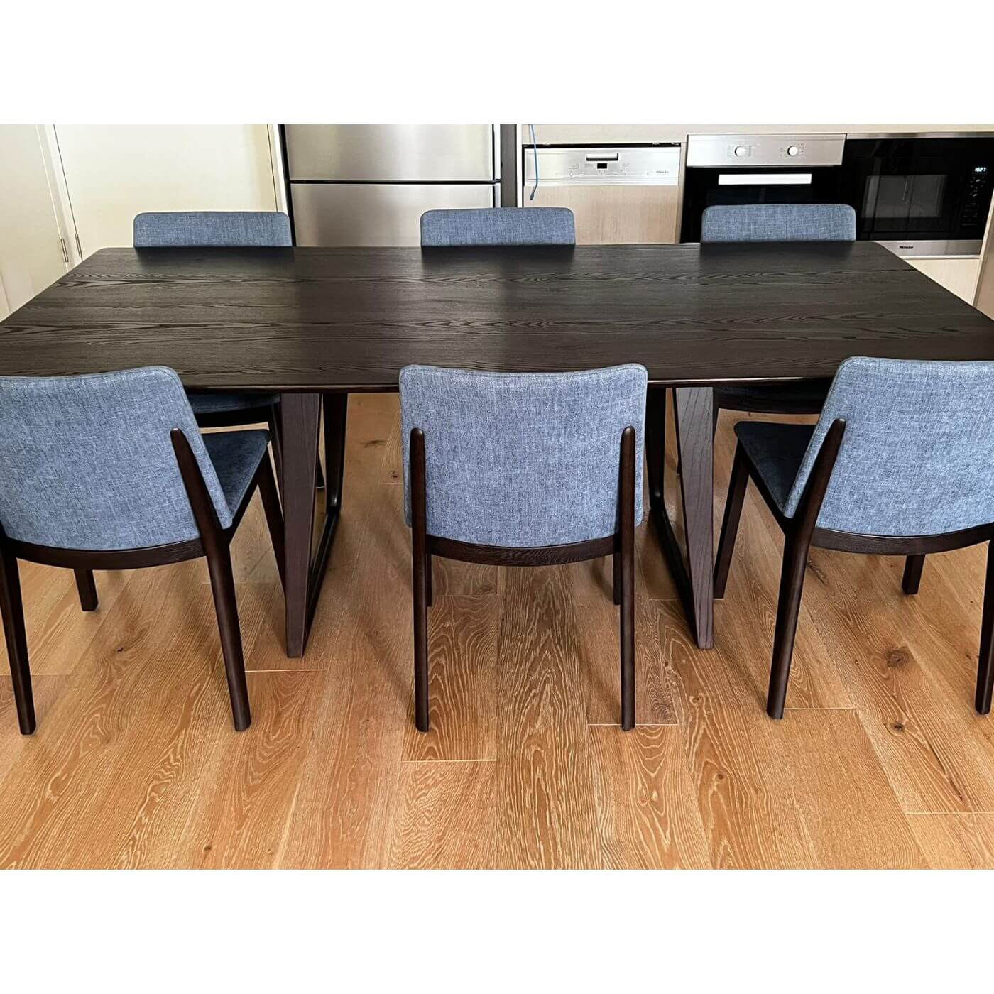King Living Aspen Dining Chairs. A set of 6 chairs upholstered in Palm Beach, Azure fabric. These chairs have a classic design with elegant lines. RRP $4,950
