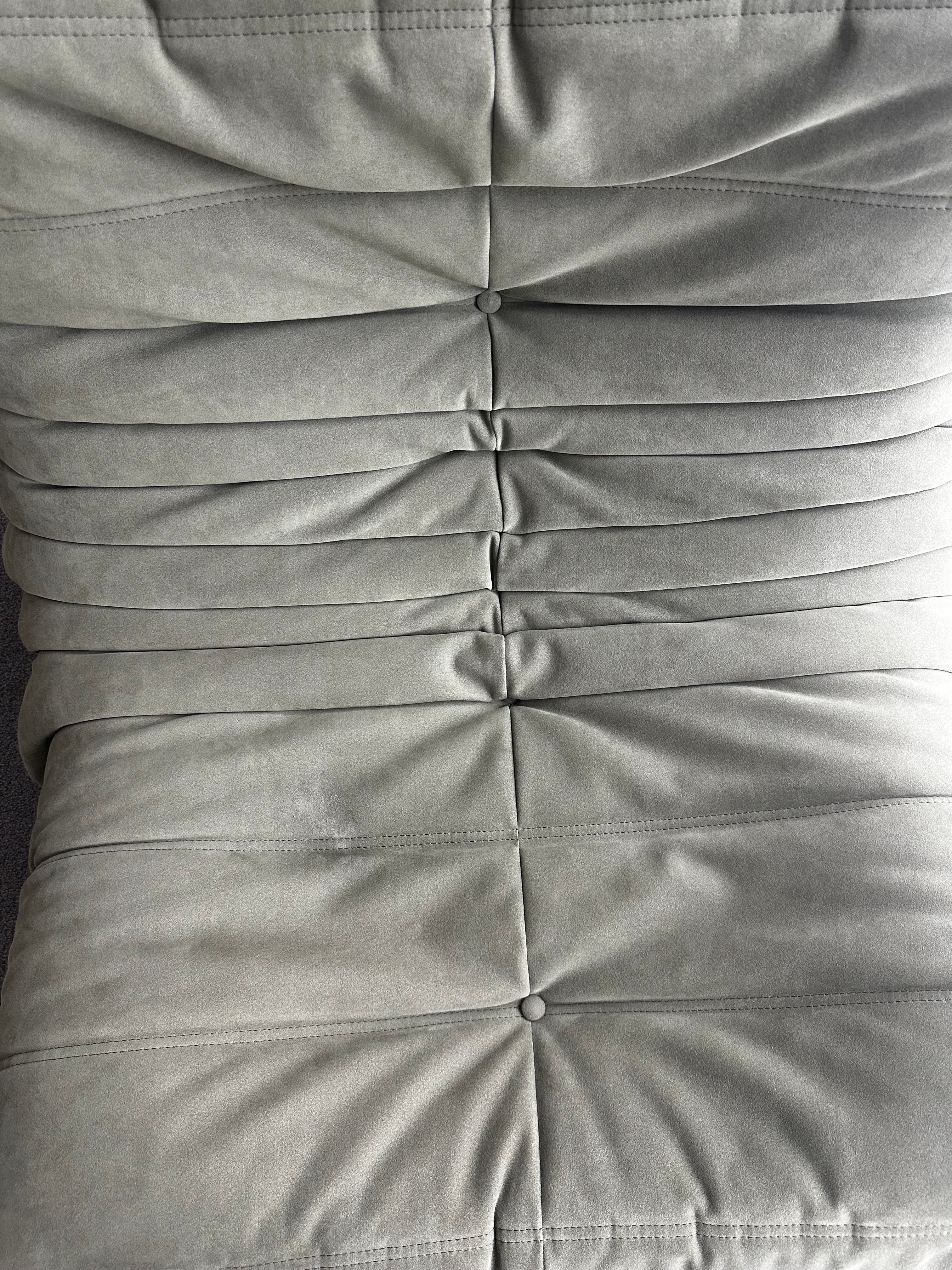 The Togo Fireside Chair is a true classic. Instantly recognisable by its distinctive shape, the Togo by Ligne Roset is hand-sewn and features pleats of folded fabric. Its ergonomic design comprises multiple density foam constructions and quilted covers, making each piece both visually attractive and physically inviting. To complement this chair is the statement footstool. Both hand-crafted in France and upholstered in Alcantara - Lizard. Purchased from Domo Melbourne in 2023. Slight mark on seat area as pictured.