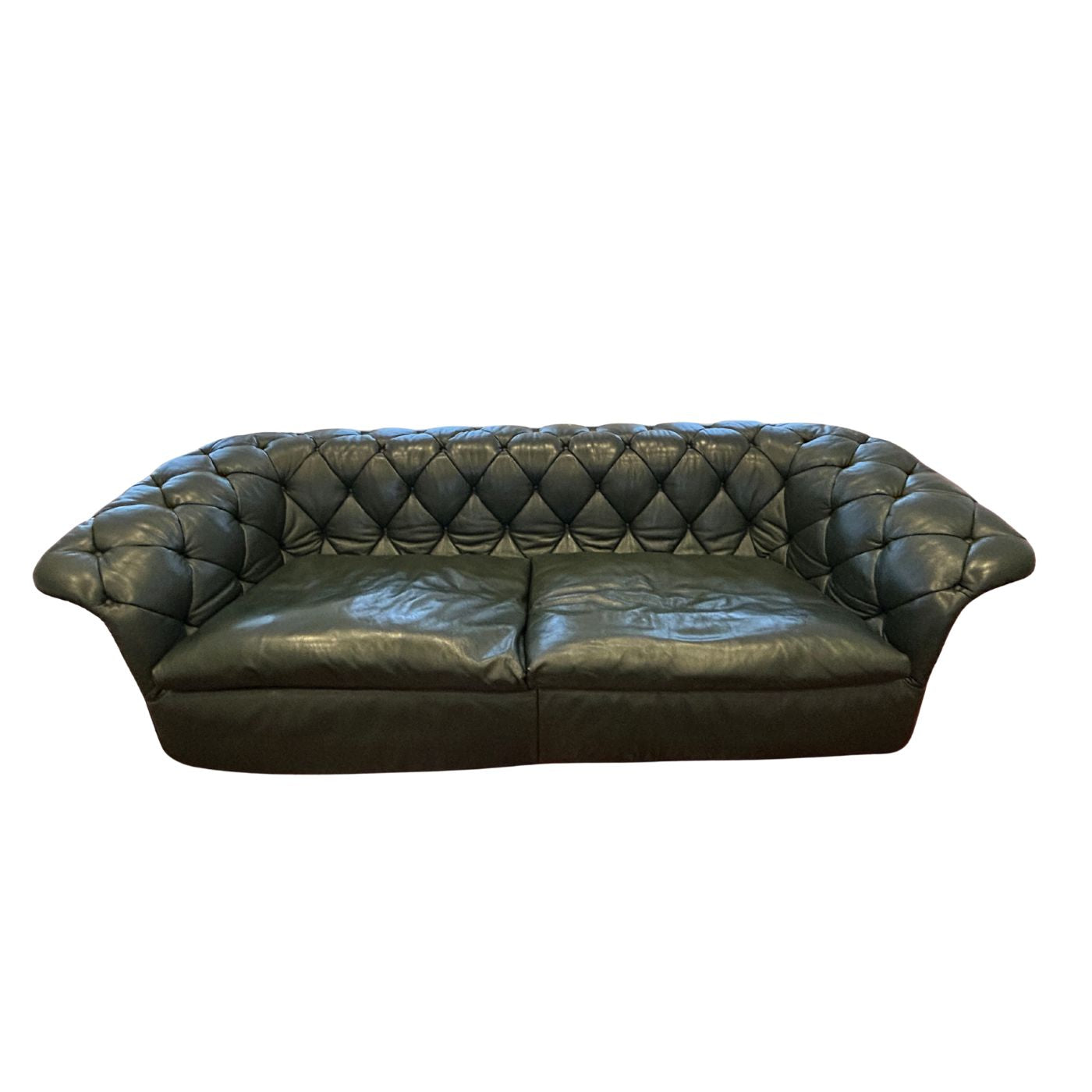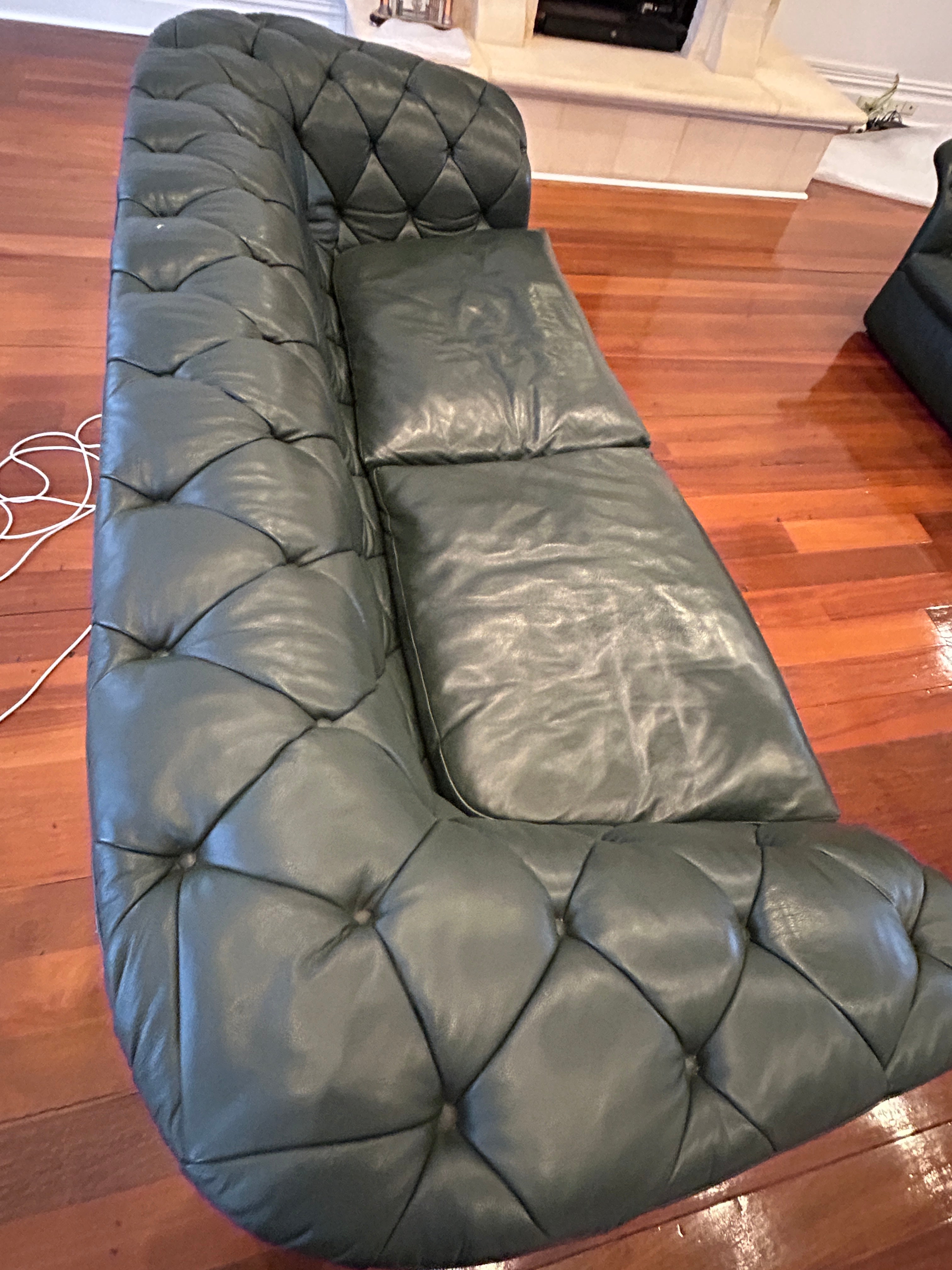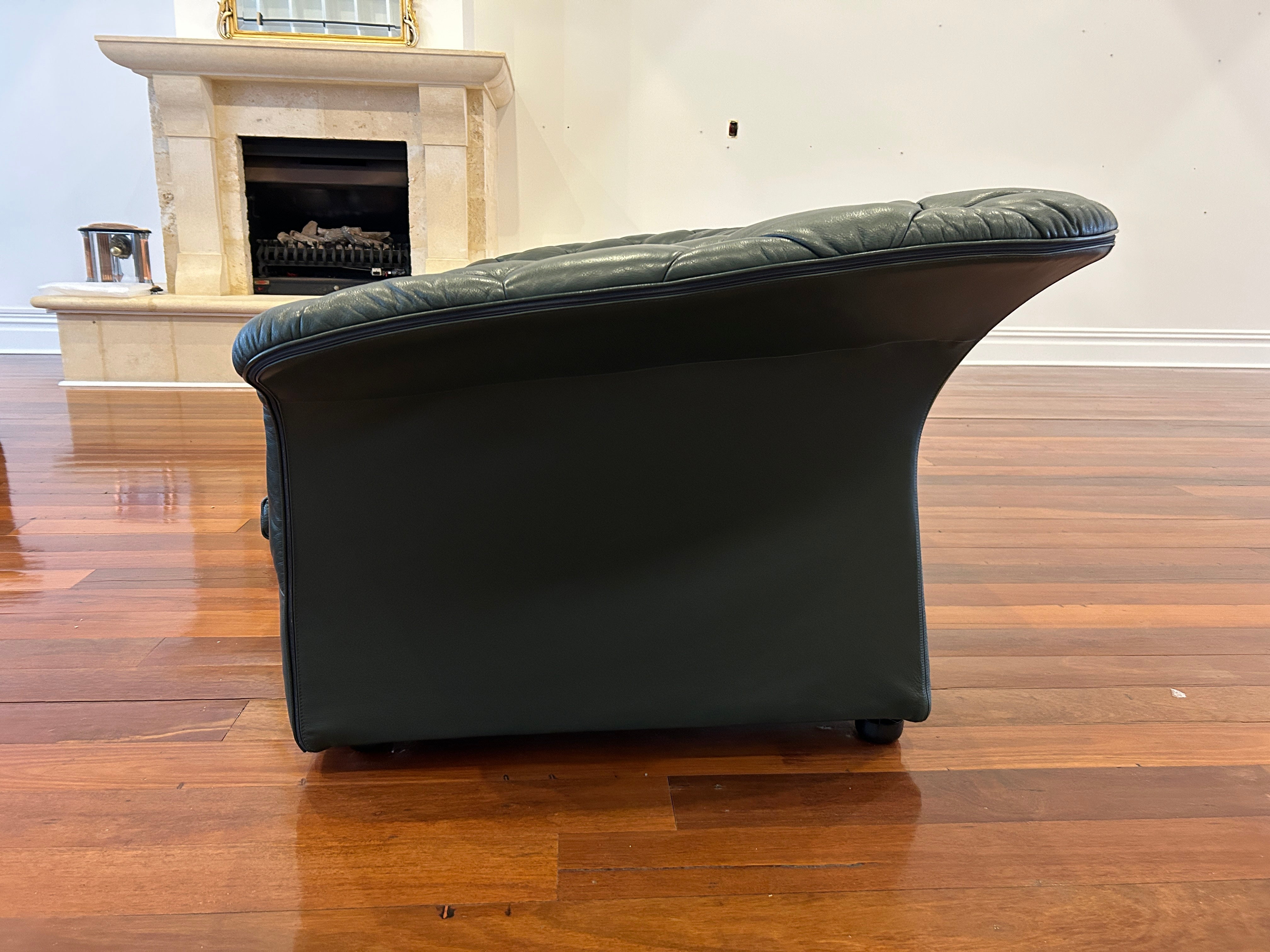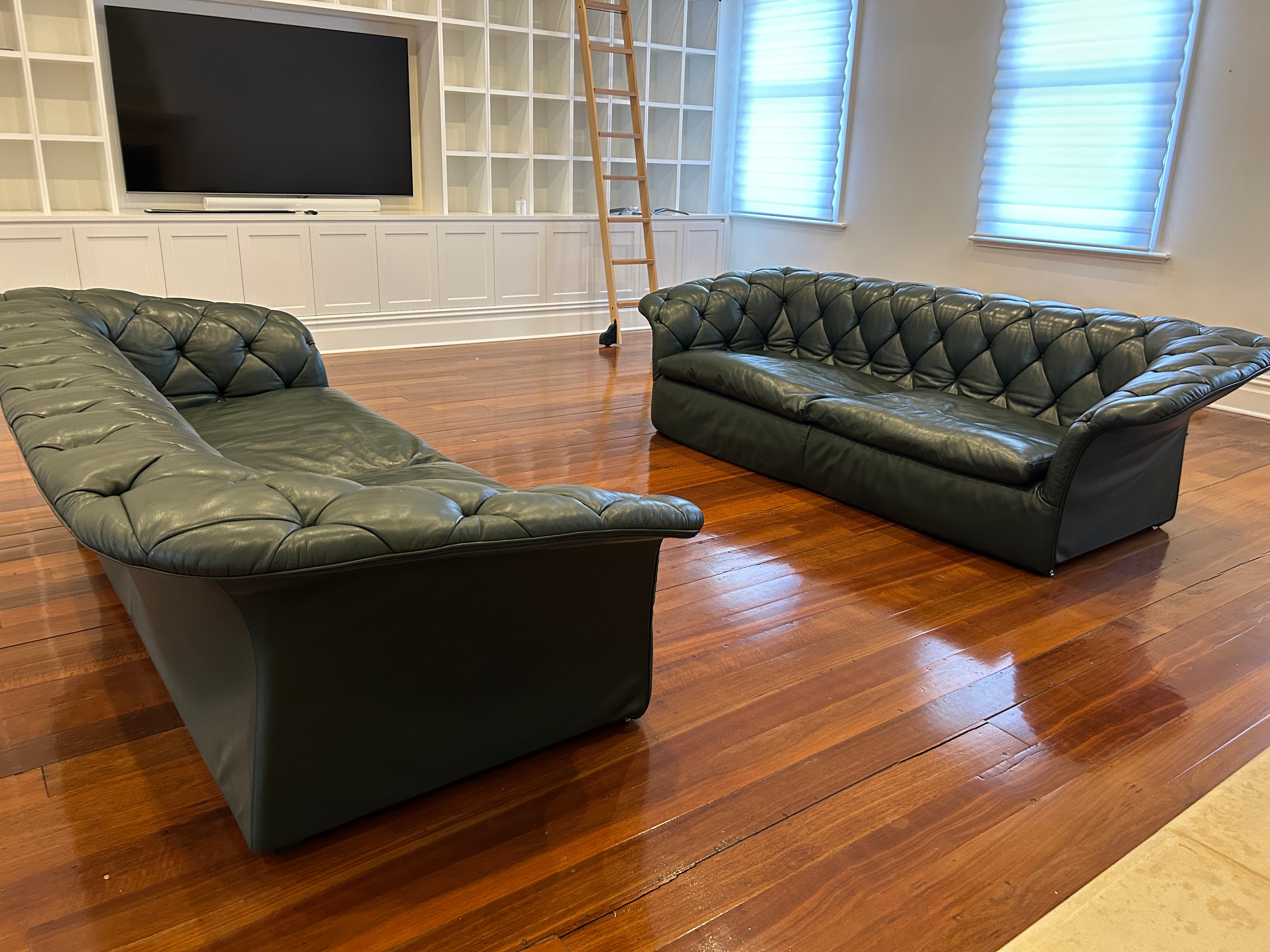 Moroso Bohemian Green Leather 3 Seat Sofa, Pair