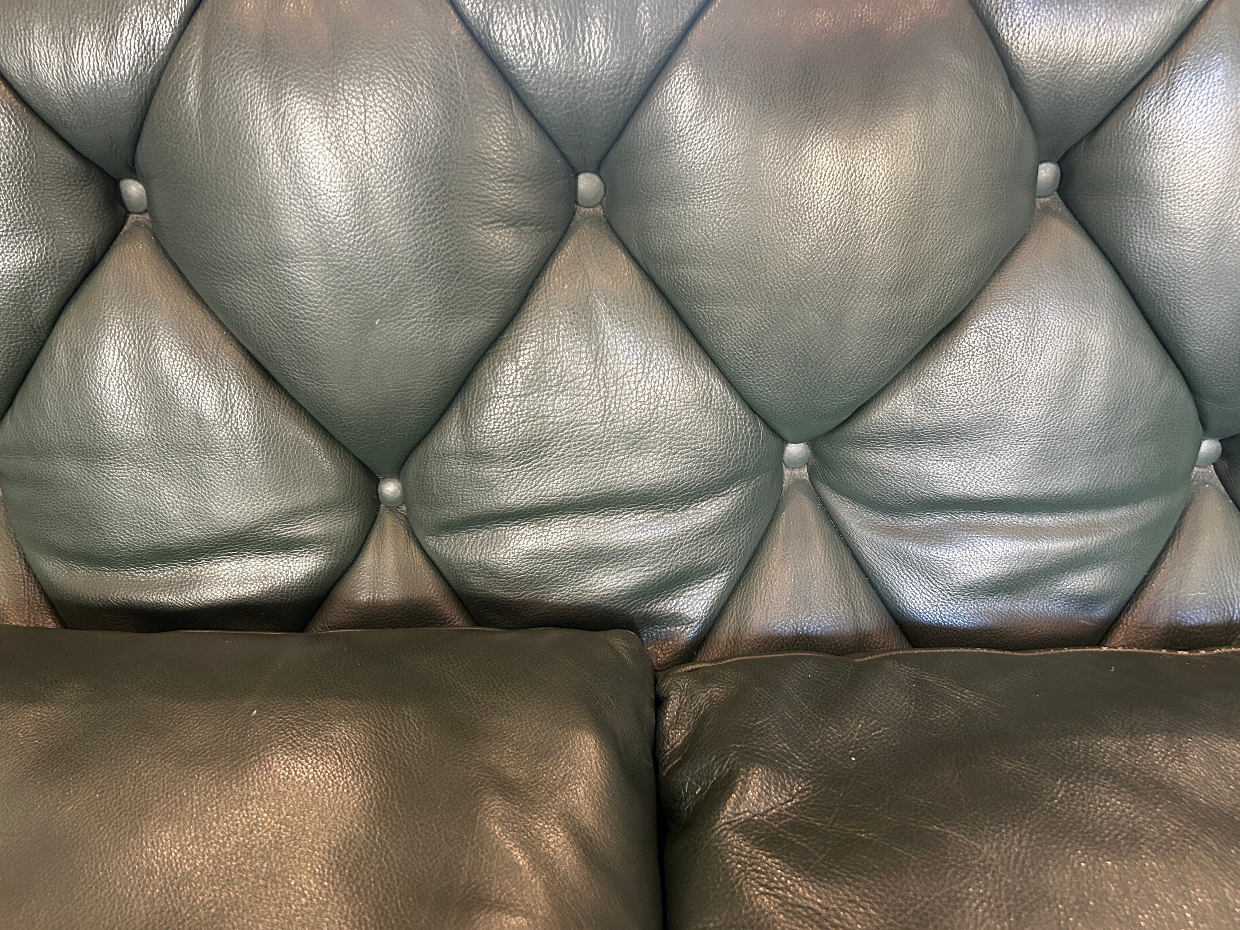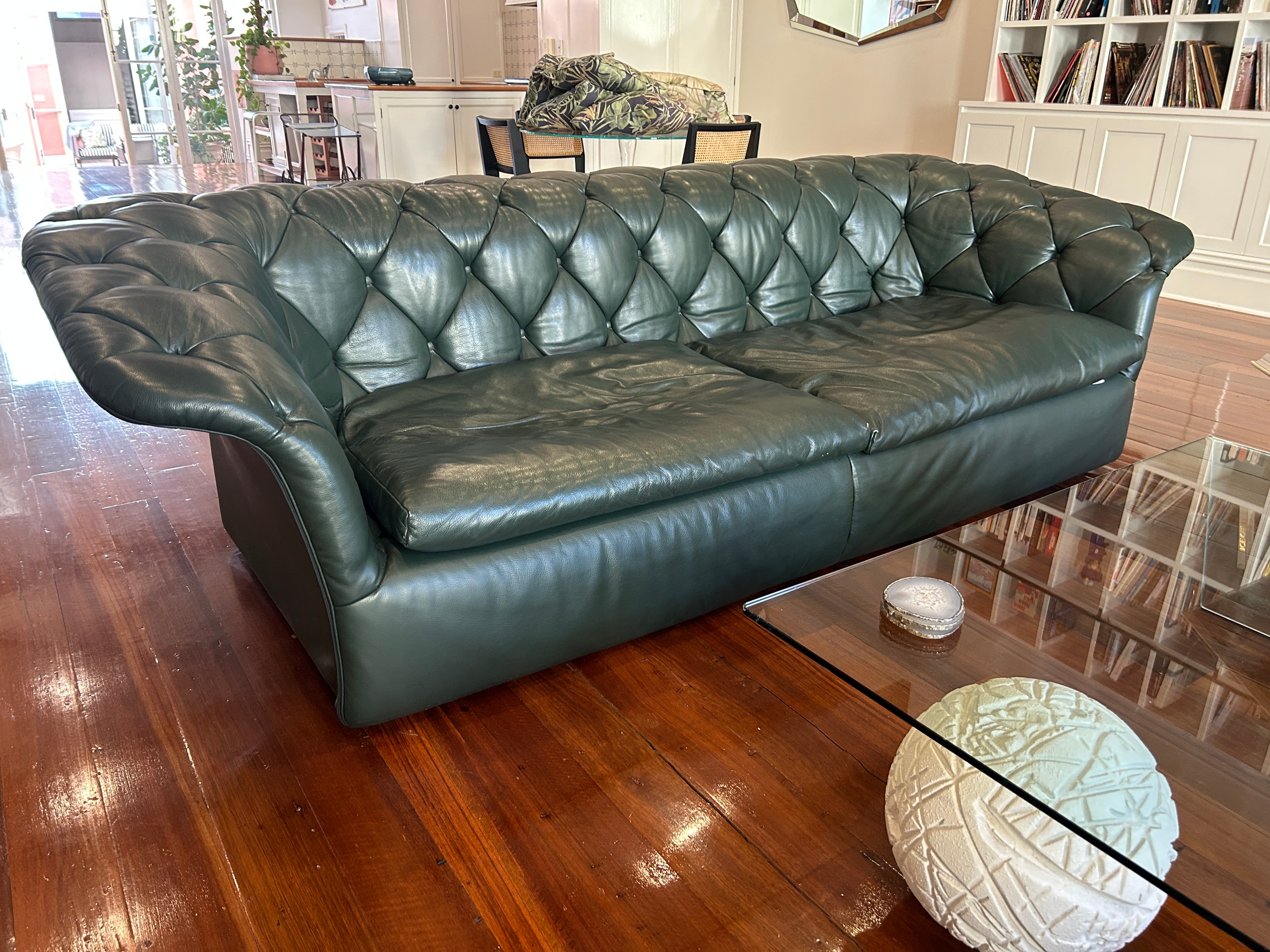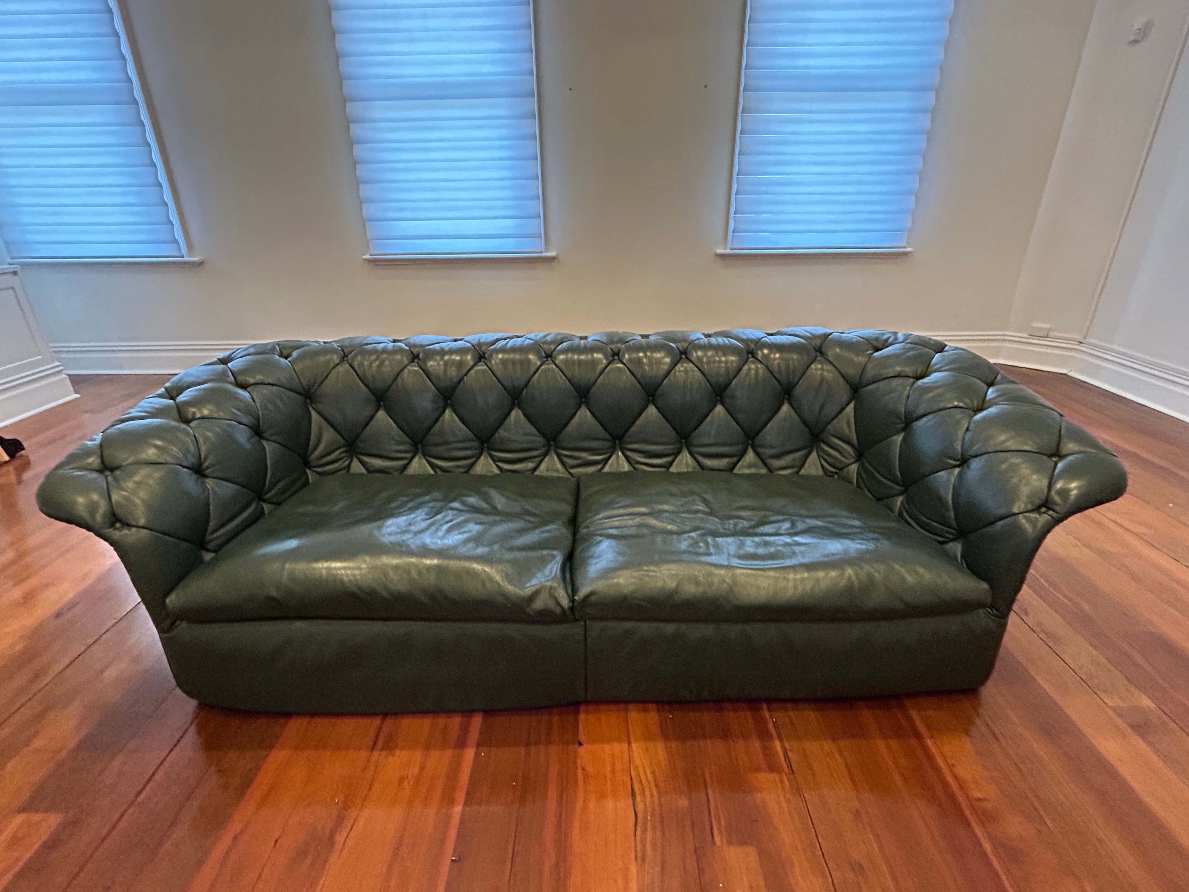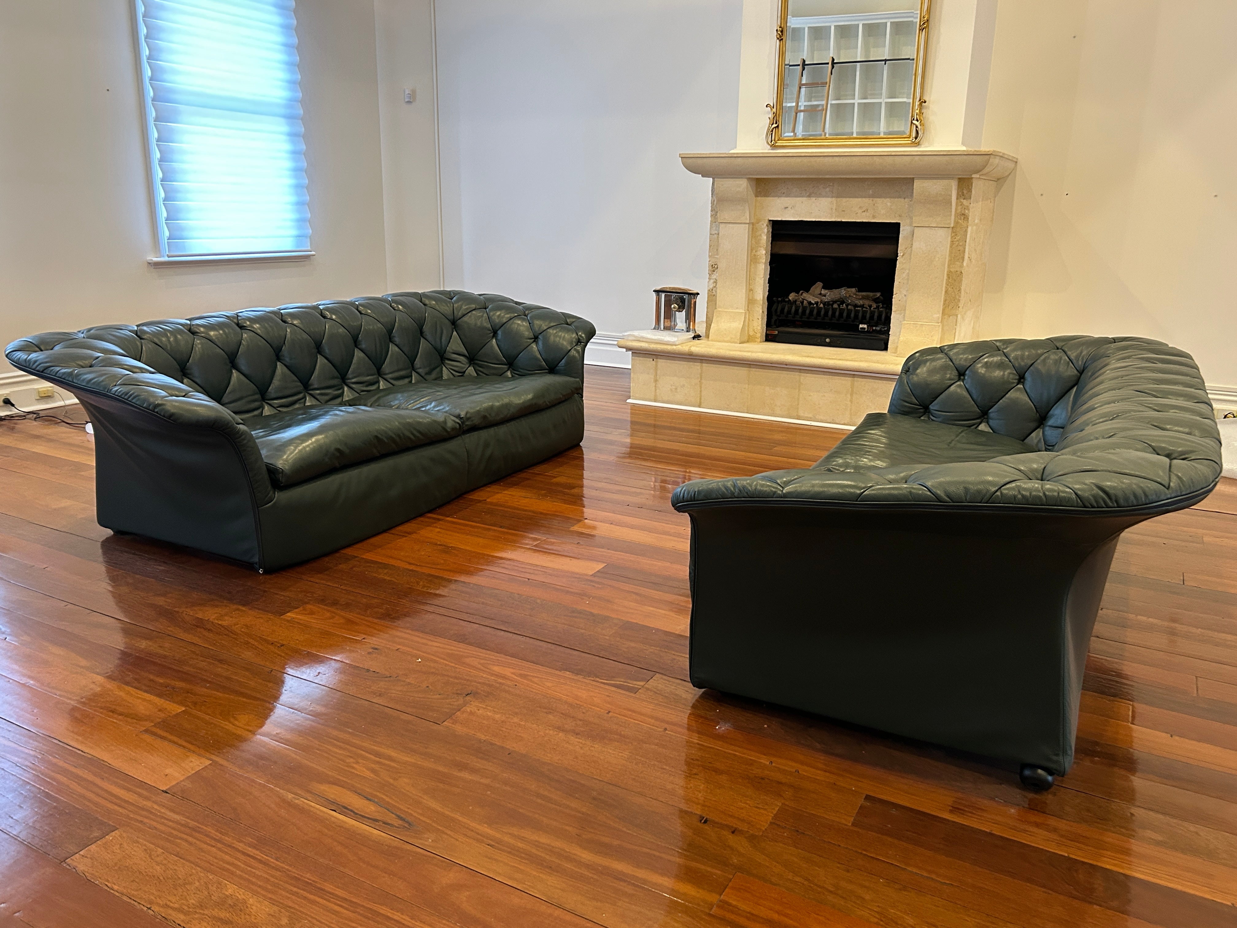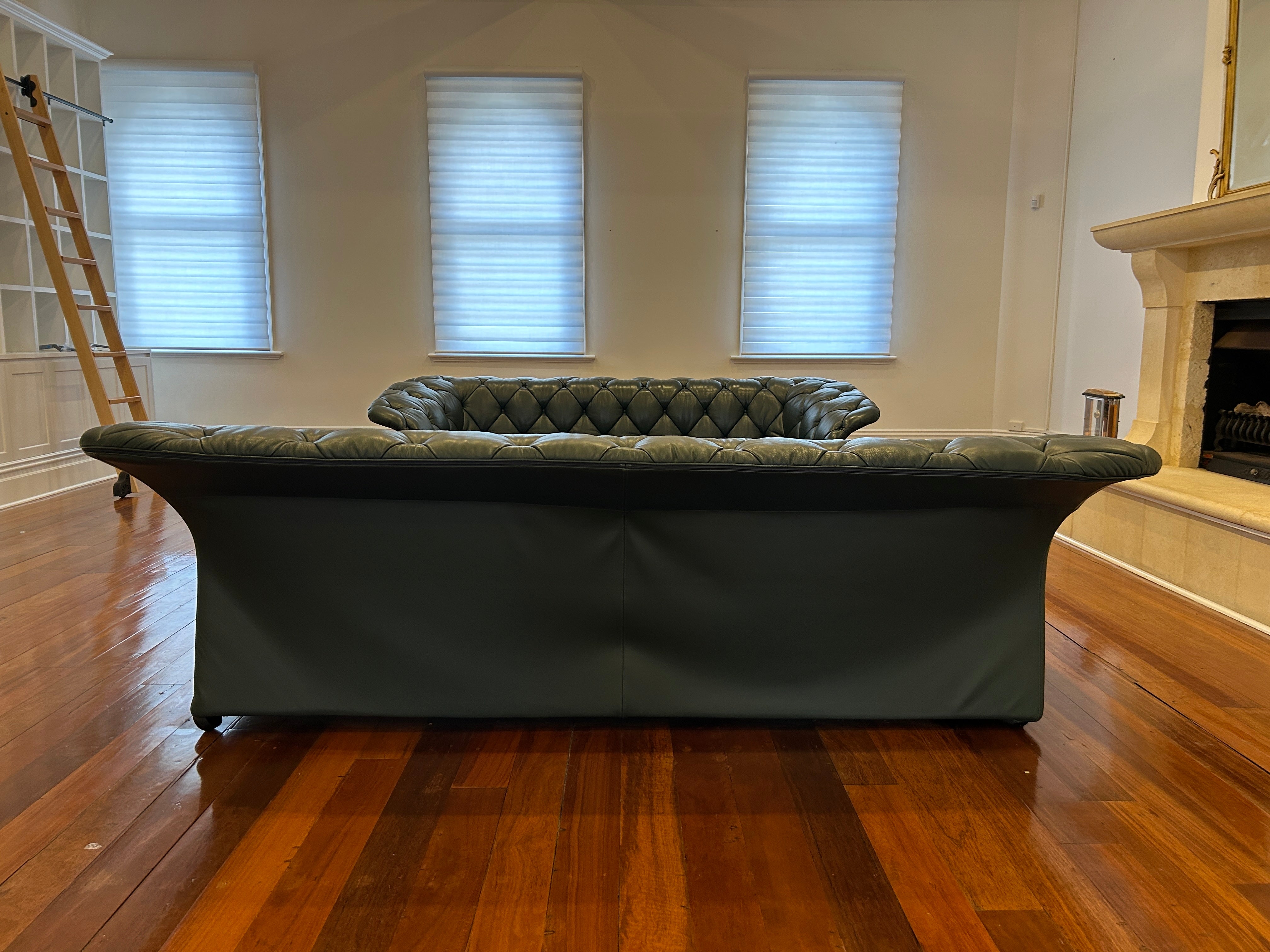 Moroso Bohemian Green Leather 3 Seat Sofa, Pair