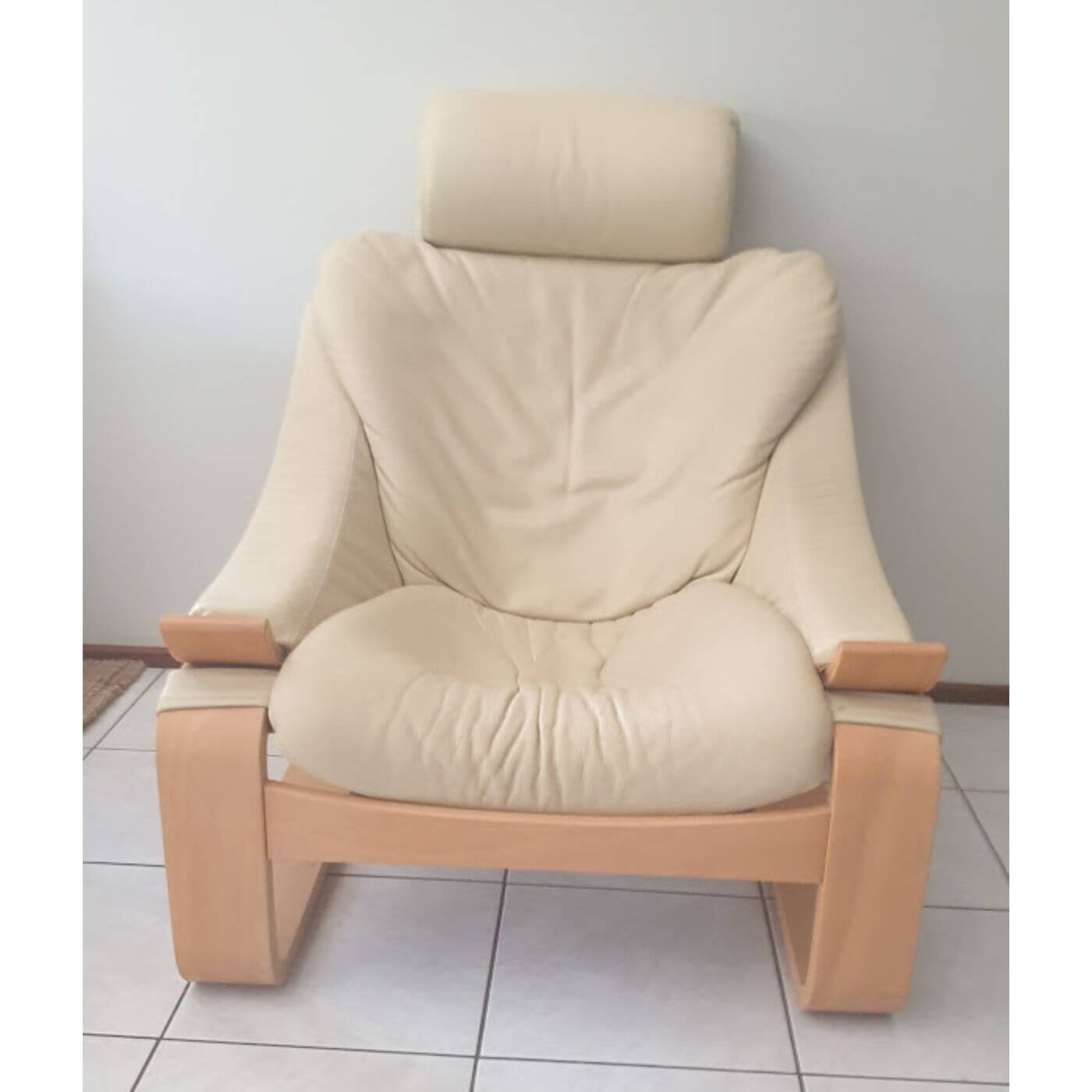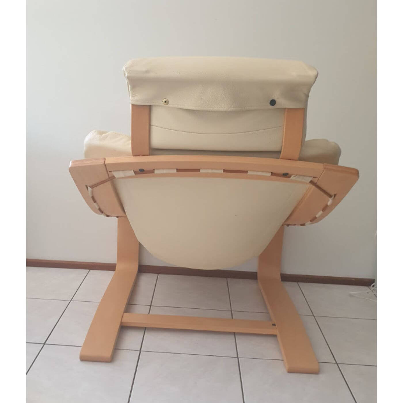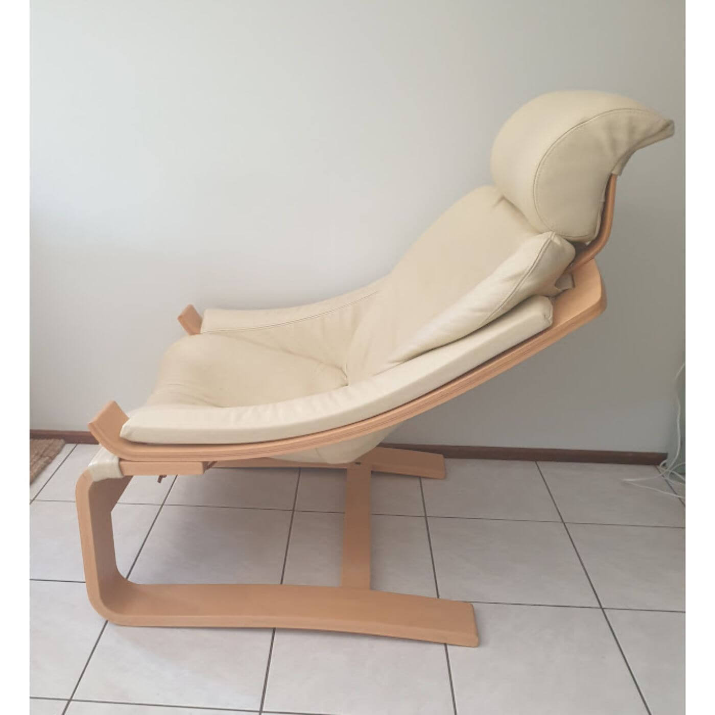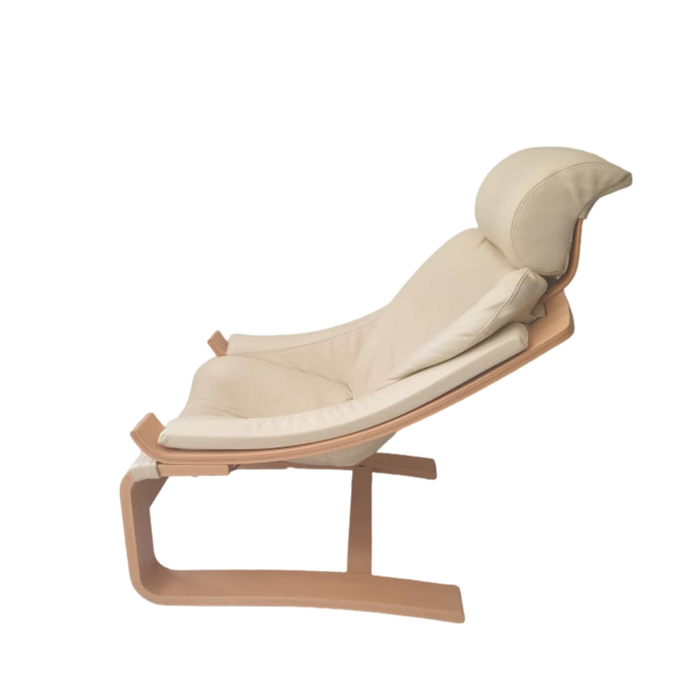 Vintage Nelo Kroken lounge chair. Designed in the 1970s by Äke Fribytter for Nelo Möbel, Sweden. The cantiliver frame is made of hot-bent beech supported by a canvas seat. The upholstery is made of natural light cream leather, preserved in very good condition. It has been in the same family since the 1970s, and taken care of 'like an art piece'. A great find for lovers of Scandinavian design. Authenitc, with manufacturer's label.